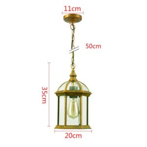 Dimension: 19.5x35cm Material: Copper and Glass Color: Gold Power Rating: 60W MAX (come with warm white lights) Voltage: 110V-250V Light Source: E27 Bulb Suitable Space: 10-15 square meter Apply to:  Kitchen,Bar,Room,Home,Hotel,Warehouse,Restaurant,Coffee Shop…