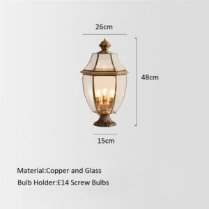 Dimension: 26x48cm Material: Copper and Glass Color: Gold Power Rating: 60W MAX (come with warm white lights) Voltage: 110V-250V Light Source: E14 Bulb Suitable Space: 10-15 square meter Apply to:  Kitchen,Bar,Room,Home,Hotel,Warehouse,Restaurant,Coffee Shop…