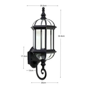 Dimension: 21×39.5cm Material: Metal and Glass Color: Black Power Rating: 60W MAX (come with warm white lights) Voltage: 110V-250V Light Source: E27 Bulb Suitable Space: 10-15 square meter Apply to:  Kitchen,Bar,Room,Home,Hotel,Warehouse,Restaurant,Coffee Shop…