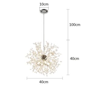 Dimension: 40x40cm Material: Metal and Crystal Color: Silver Metal Power Rating: 60W MAX for each holder Voltage: 110V-250V Light Source: G9 LED Bulb(come with bulbs) Suitable Space: 20-45 square  meter Apply to:  Kitchen,Bar,Room,Home,Hotel,Warehouse,Restaurant,Coffee Shop…