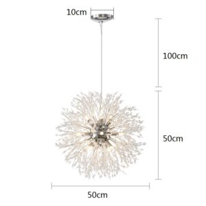 Dimension: 50x50cm Material: Metal and Crystal Color: Silver Metal Power Rating: 60W MAX for each holder Voltage: 110V-250V Light Source: G9 LED Bulb(come with bulbs) Suitable Space: 20-45 square  meter Apply to:  Kitchen,Bar,Room,Home,Hotel,Warehouse,Restaurant,Coffee Shop…