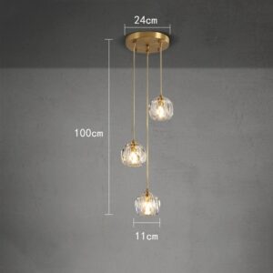 Dimension: Shade Size:11*12cm; Ceiling Cover Size:24cm Material: Metal and Crystal Color: Clear Power Rating: 60W MAX (come with bulbs) Voltage: 110V-250V Light Source: G9 LED Bulb Suitable Space: 10-15 square  meter Apply to:  Kitchen,Bar,Room,Home,Hotel,Warehouse,Restaurant,Coffee Shop…