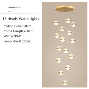 Dimension: Lamp Shade Size: 15cm Material: Metal and Acrylic Color: Gold Power Rating: 216W (come with warm lights) Voltage: 110V-250V Light Source: LED Bulb Suitable Space: 10-25 square meter Apply to:  Kitchen,Bar,Room,Home,Hotel,Warehouse,Restaurant,Coffee Shop…