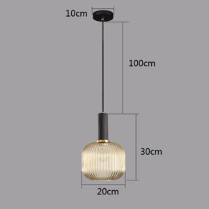 Dimension: 20x30cm Material: Metal and Glass Color: Black Metal and Amber Glass Power Rating: 60W MAX (come with warm white lights) Voltage: 110V-250V Light Source: E27 Bulb Suitable Space: 10-15 square meter Apply to:  Kitchen,Bar,Room,Home,Hotel,Warehouse,Restaurant,Coffee Shop…