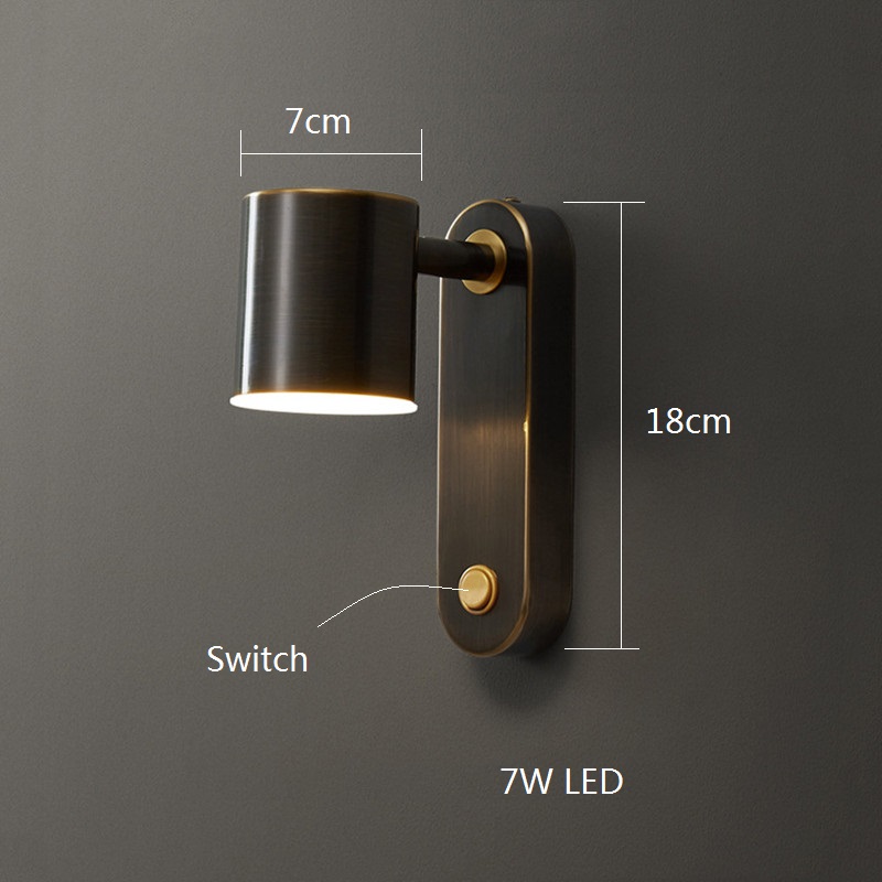 Bedroom LED Wall Light Copper Wall Lamps Hallway Wall Lamp Black Wall Lighting 7W With Switch On Lamp
