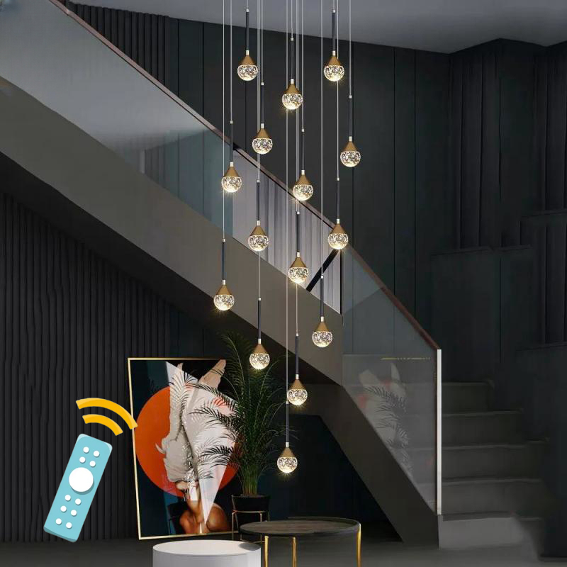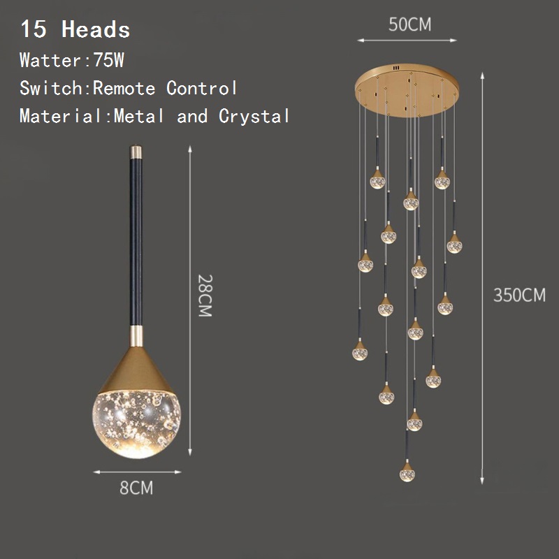 Crystal Stair Chandelier Lighting Home Pendant Light Bar Large Ceiling Lamp 15 Heads 75W Remote