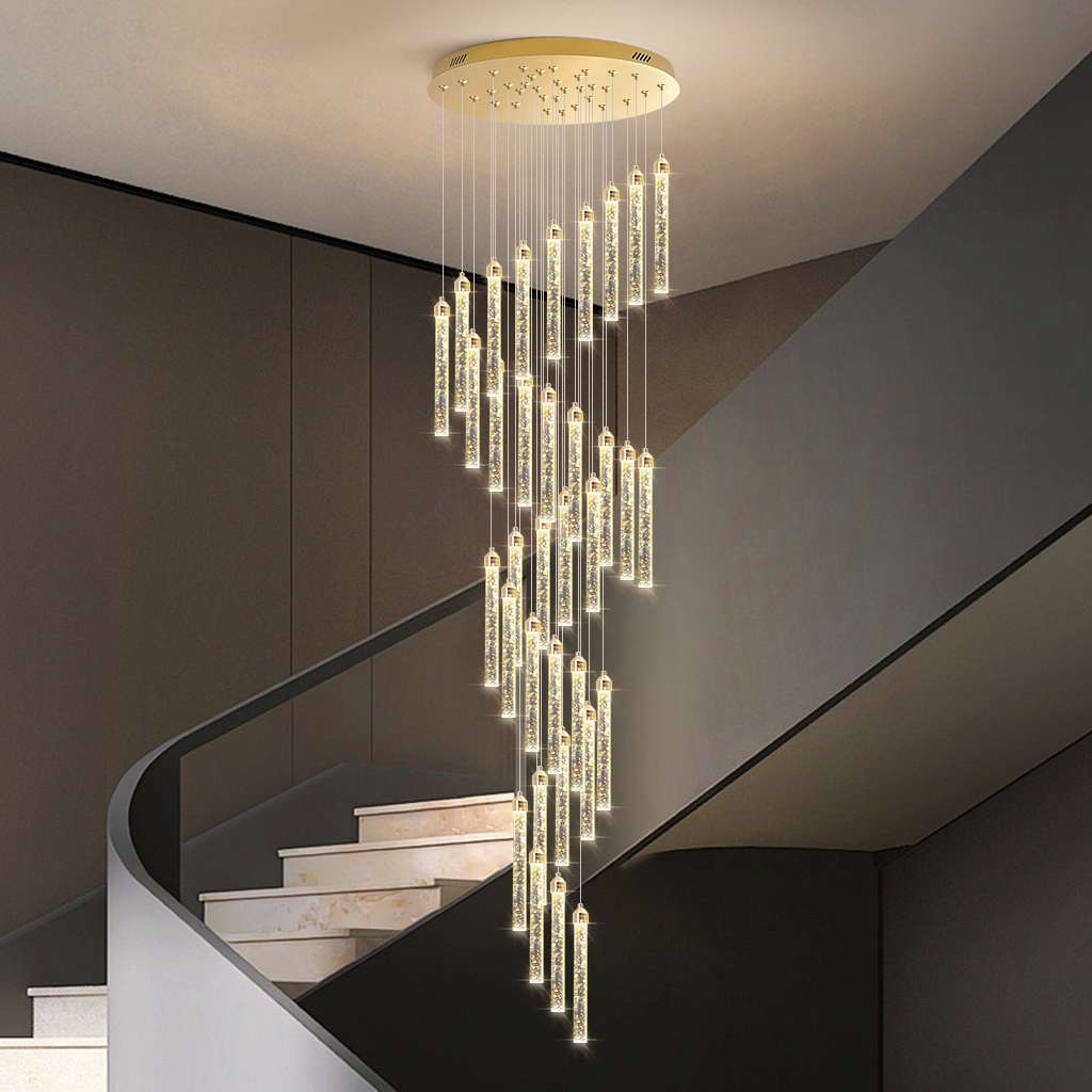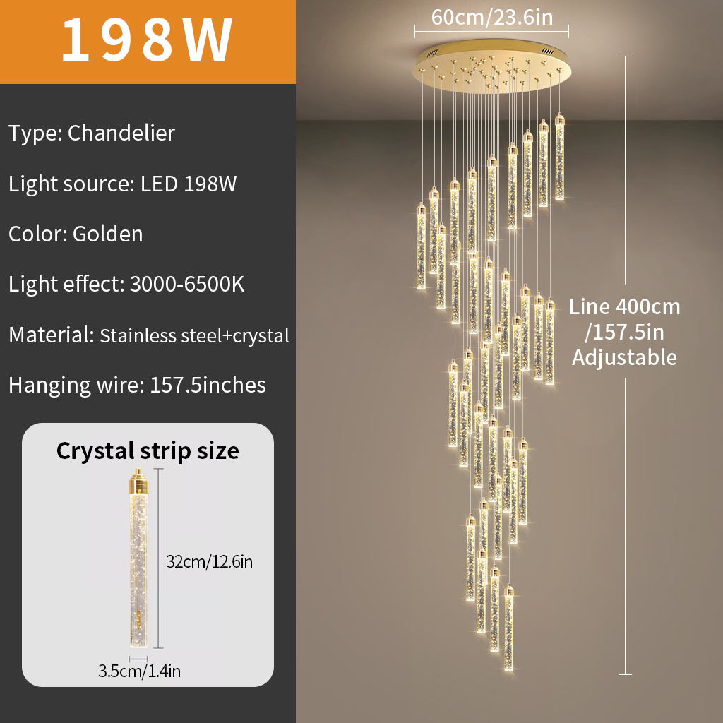 Crystal Stair Chandelier Lighting Home Pendant Light Hotel Bar Ceiling Lamp 33 Heads 198W Remote