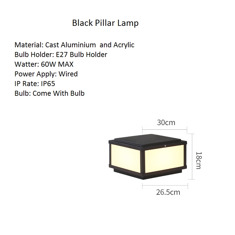 Garden Gate Pillar Lamp Yard Post Lighting Outdoor Pillar Lamps Home Black Post Light 30cm