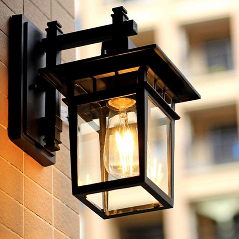 Garden Wall Lamp Glass Outdoor Wall Lighting Balcony Retro Wall Lamps Home Black Wall Light