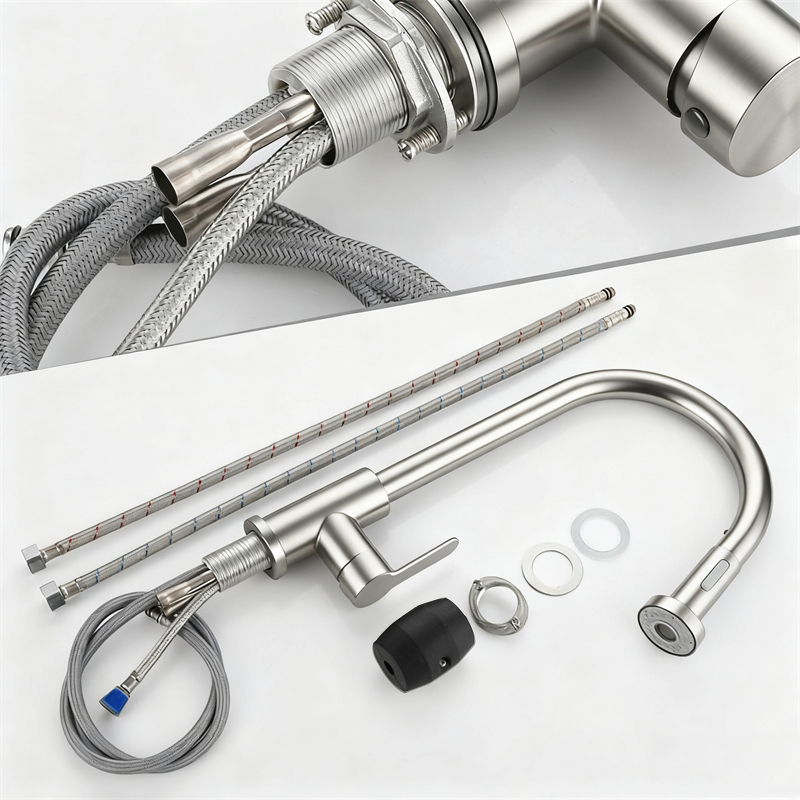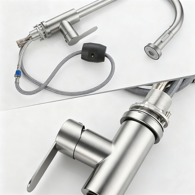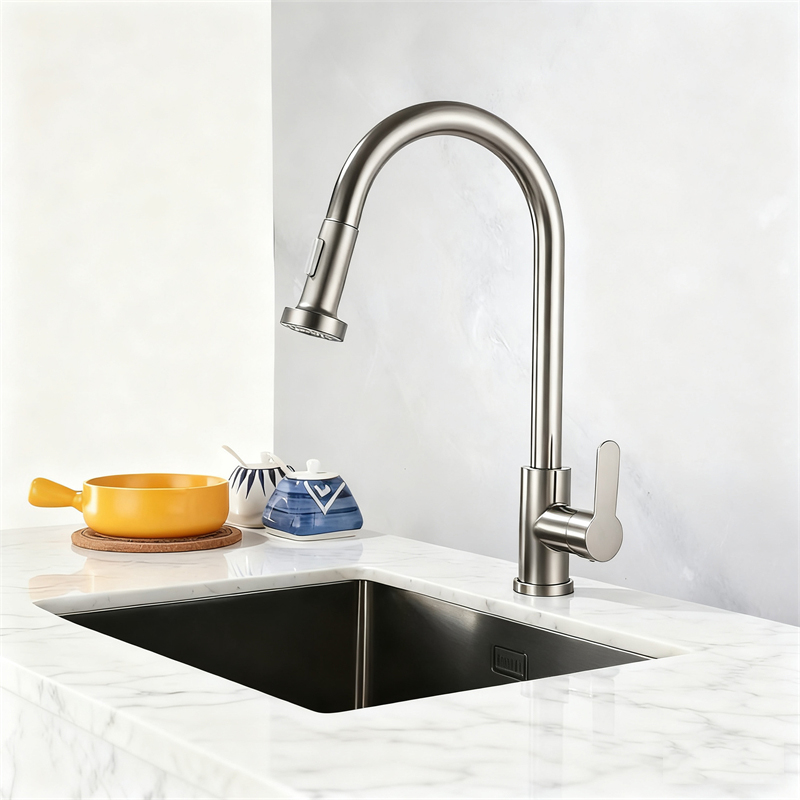 Home Pull Out Faucet Kitchen Mixer Tap Laundry Sink Basin Taps Stainless Steel Brushed Finish