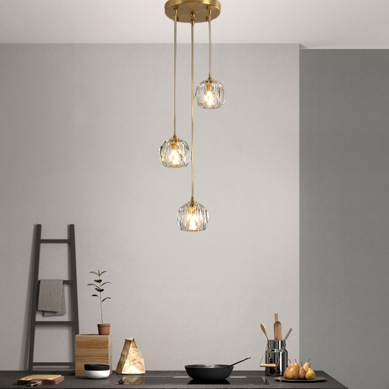 Kitchen Pendant Light Crystal Home Pendant Lighting Bedroom Lamps Hotel Bar Ceiling Lamp 3 Heads