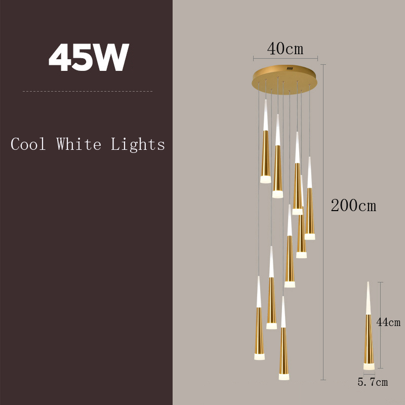 Kitchen Pendant Light Gold Stair Chandelier Lighting Home LED Lamp Hotel Ceiling Lights 9 Heads