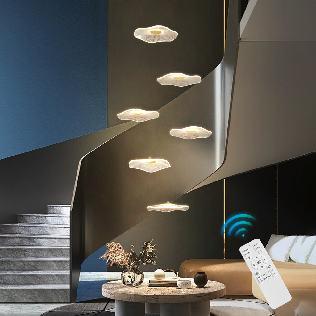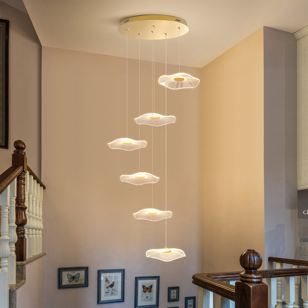 LED Pendant Light Hotel Stair Chandelier Lighting Home Gold Lamps 6 Shade Dimmable