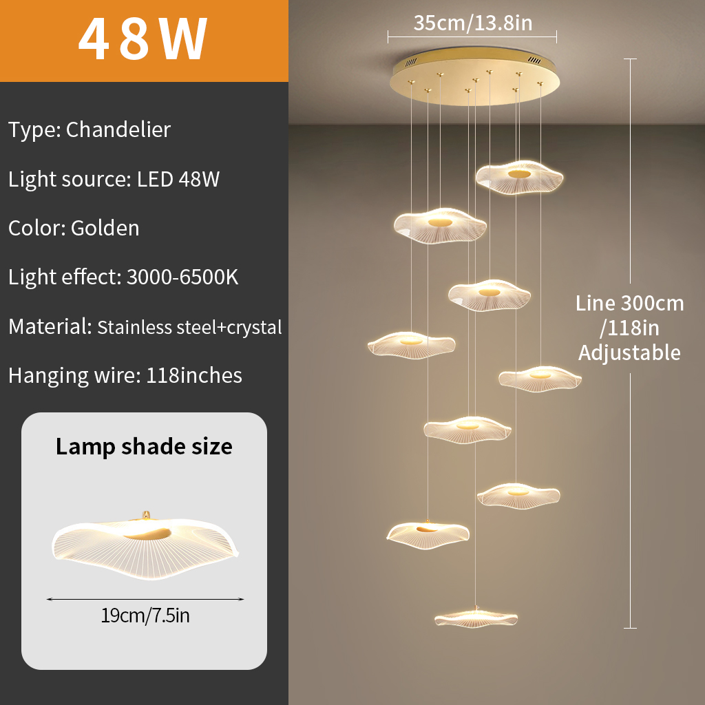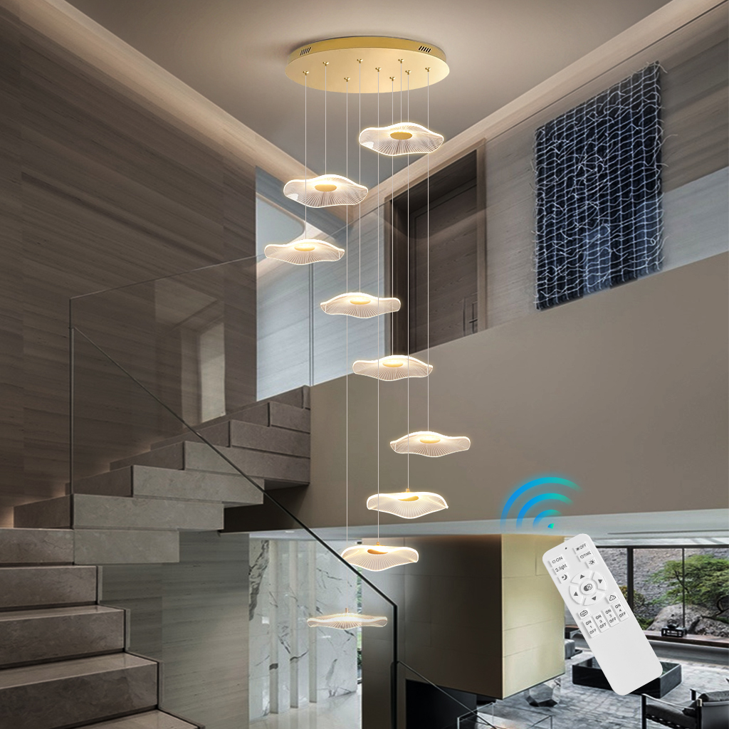 Stair Chandelier Lighting Home Dimmable LED Pendant Light Hotel Lamp 9 Shade