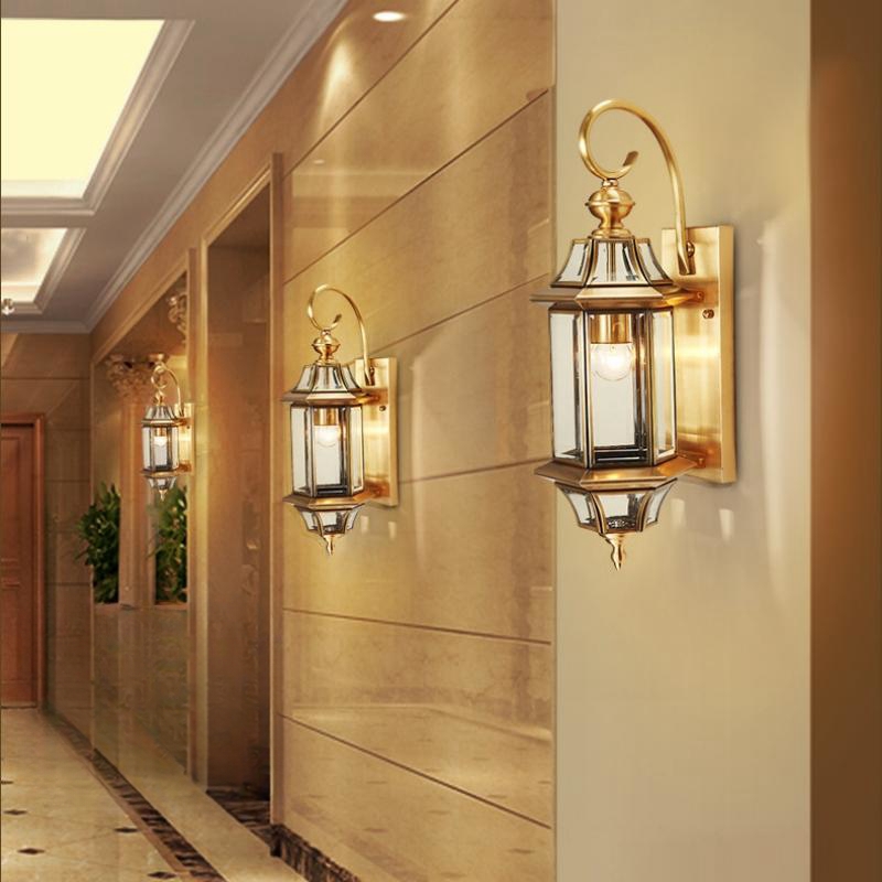 Outdoor Garden Wall Light Copper Wall Lighting Balcony Gold Wall Lamps Home Glass Wall Lamp