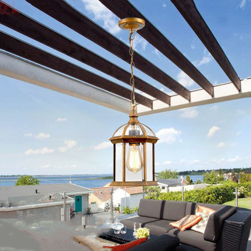 Outdoor Pendant Light Garden Lamps Yard Pendant Lighting Balcony Brown Ceiling Lamp 20cm