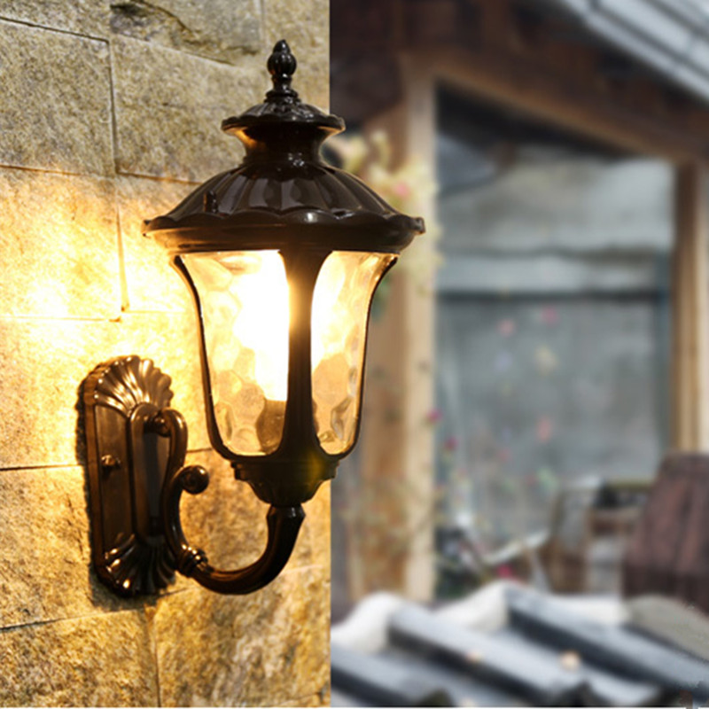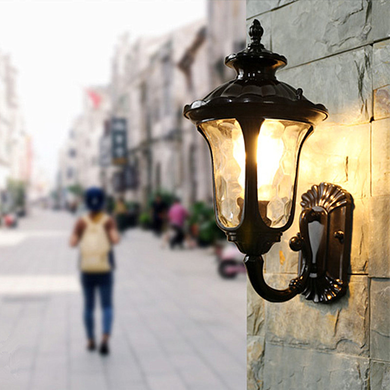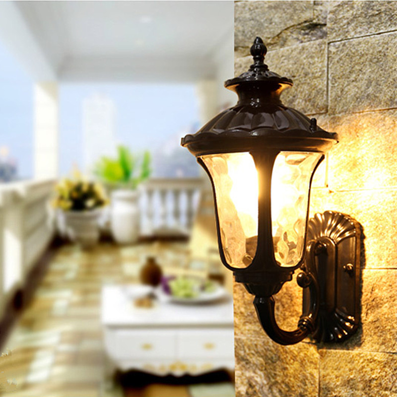 Outdoor Wall Lamp Glass Garden Wall Lighting Black Balcony Wall Lamps Home Retro Wall Light