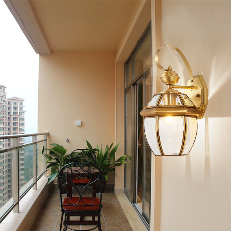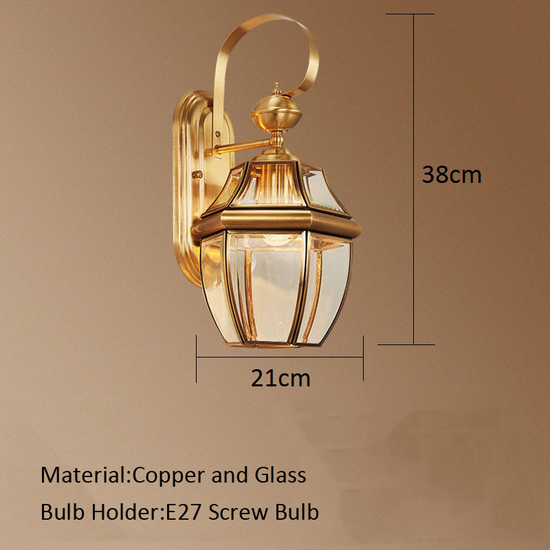 Outdoor Wall Light Copper Garden Wall Lighting Balcony Glass Wall Lamps Yard Gold Wall Lamp 38cm