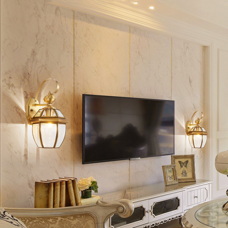 Outdoor Wall Light Garden Glass Wall Lighting Balcony Copper Wall Lamps Yard Gold Wall Lamp 33cm