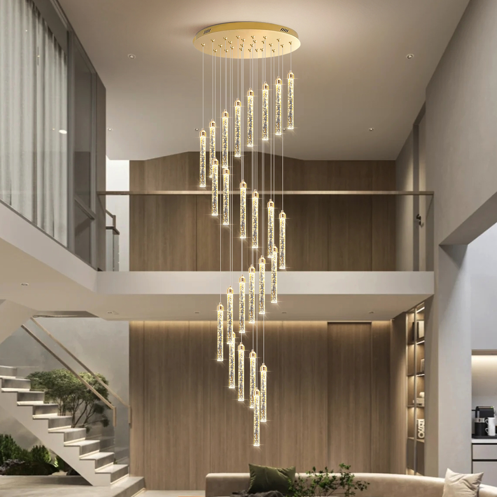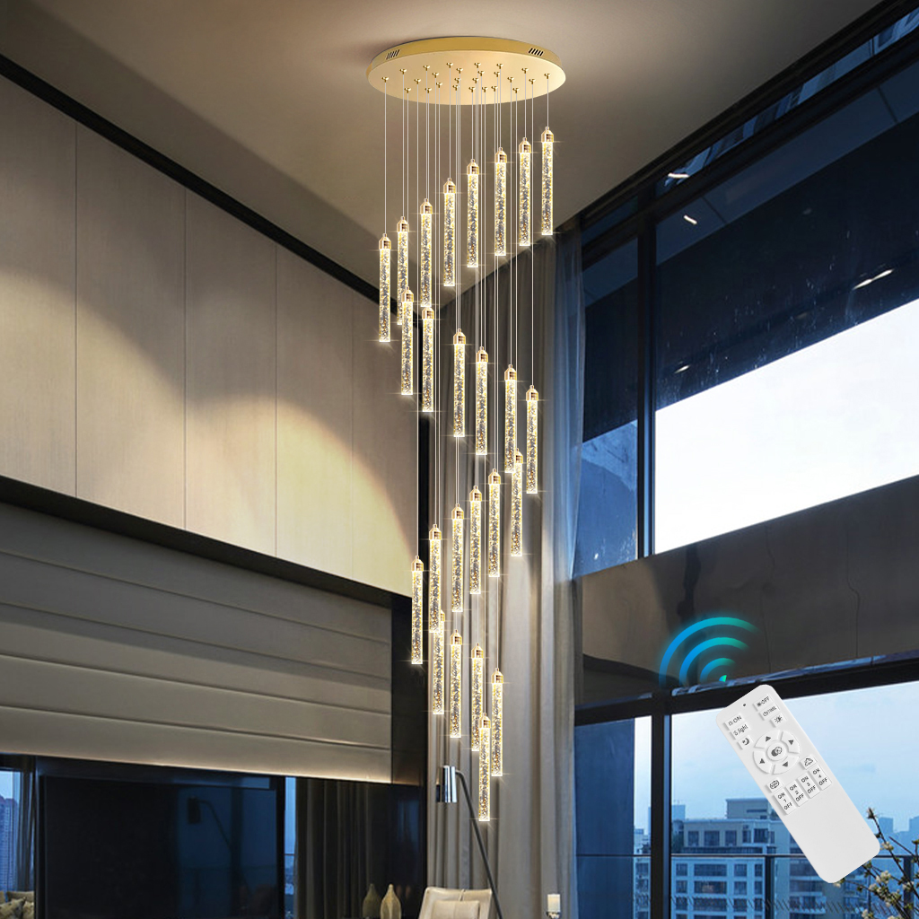 Stair Chandelier Lighting Crystal Home Pendant Light Hotel Bar Ceiling Lamp 25 Heads 150W Remote