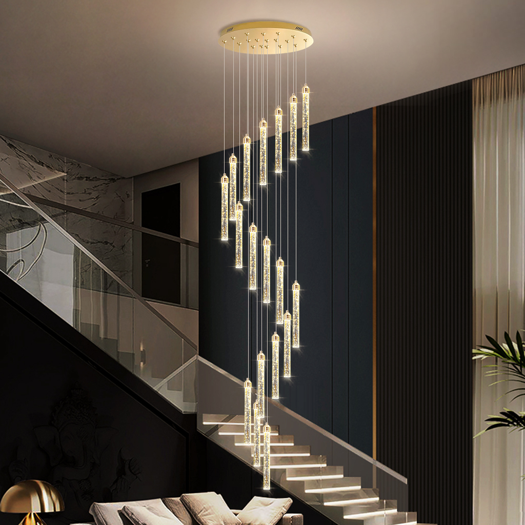 Stair Chandelier Lighting Crystal Hotel Pendant Light Bar Home Ceiling Lamp 18 Heads 108W Remote