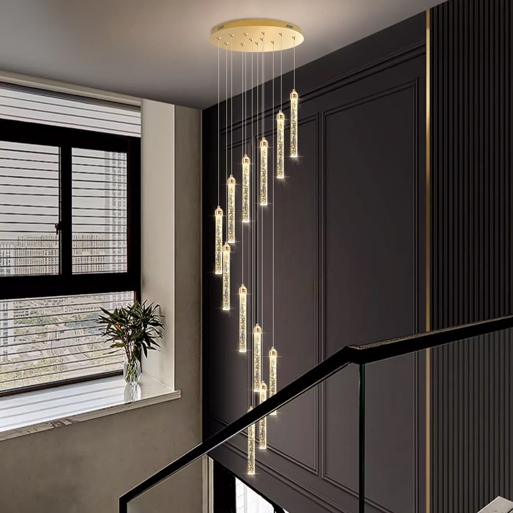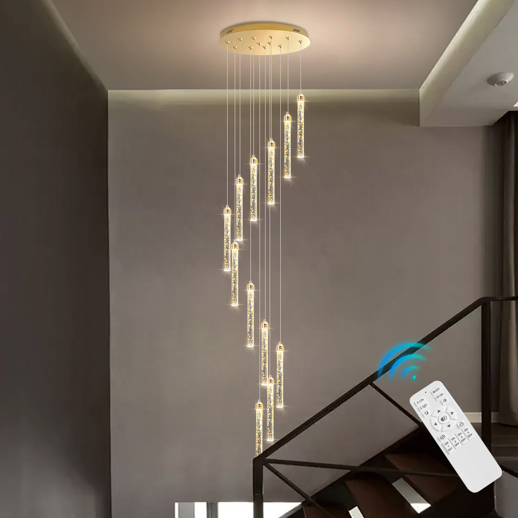 Stair Chandelier Lighting Crystal Hotel Pendant Light Home Ceiling Lamp 12 Heads 72W Remote