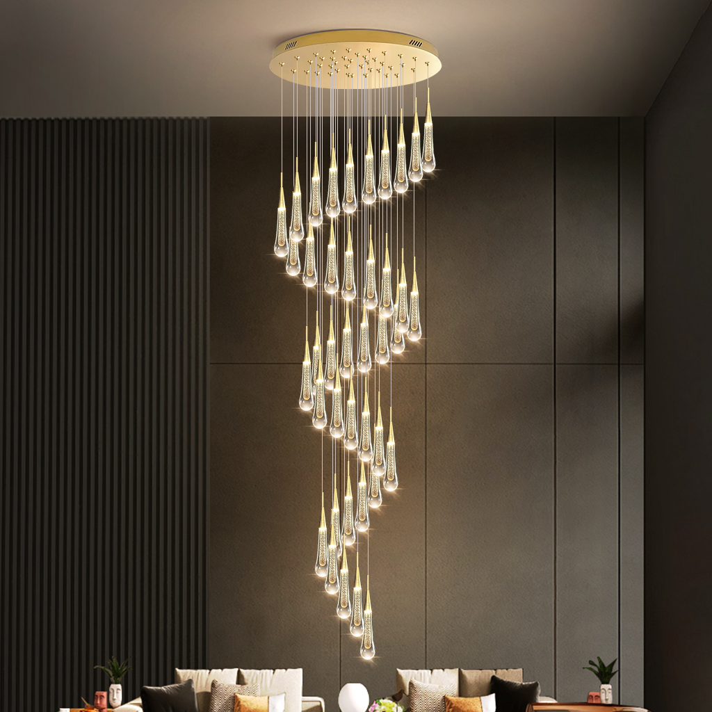 Stair Chandelier Lighting Crystal Large Pendant Light Home Ceiling Lamp 40 Heads 215W Remote
