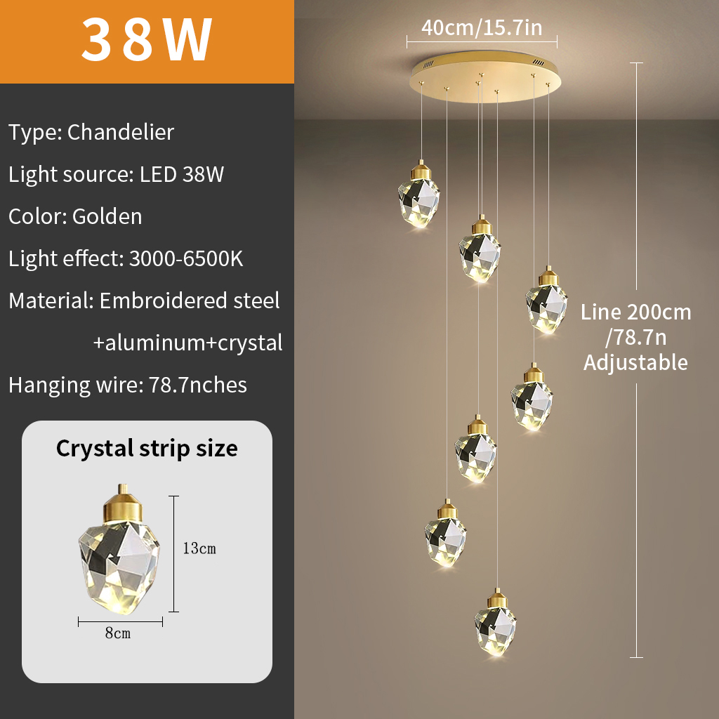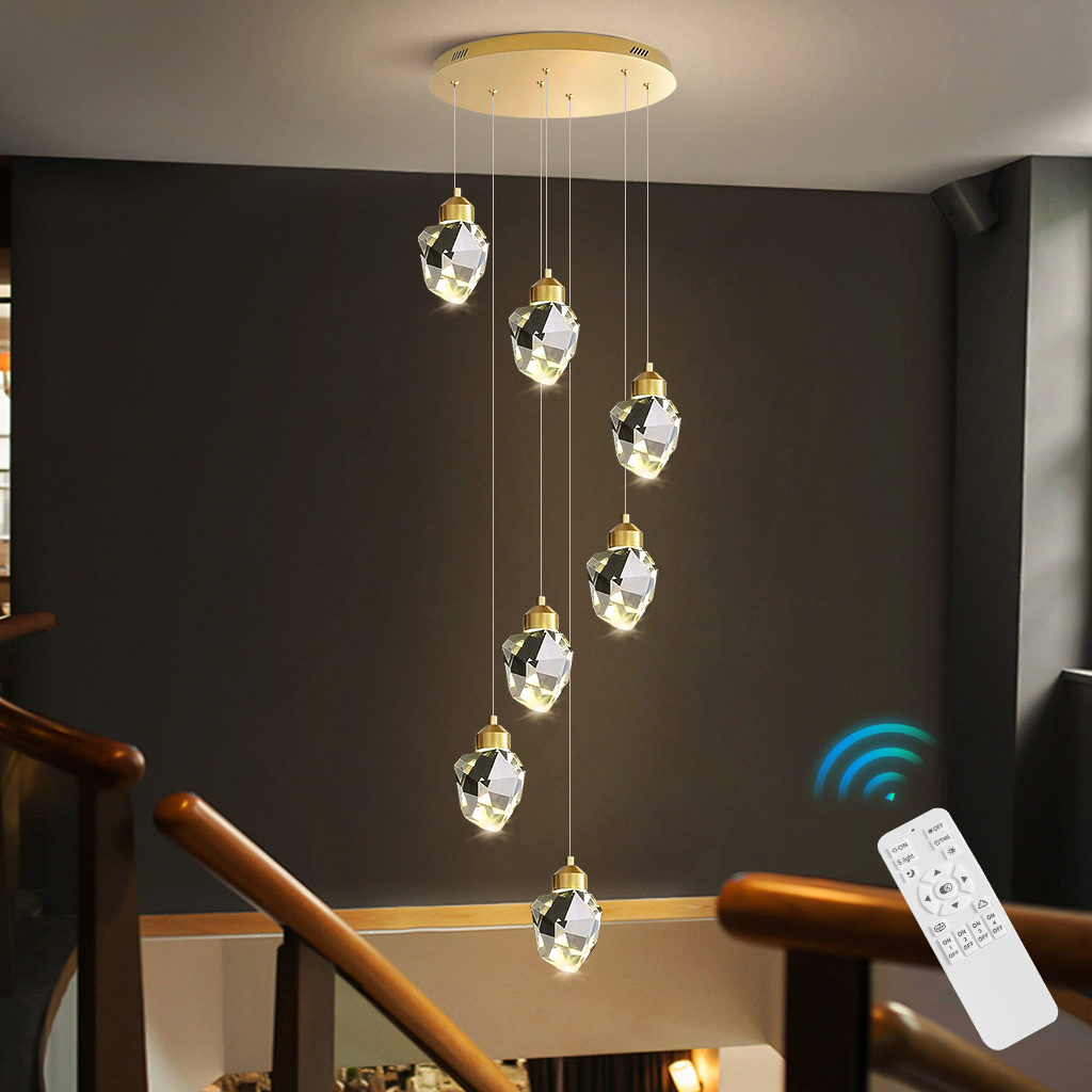 Stair Chandelier Lighting Home Crystal Pendant Light Bar Hotel Ceiling Lamp 7 Heads 38W Remote