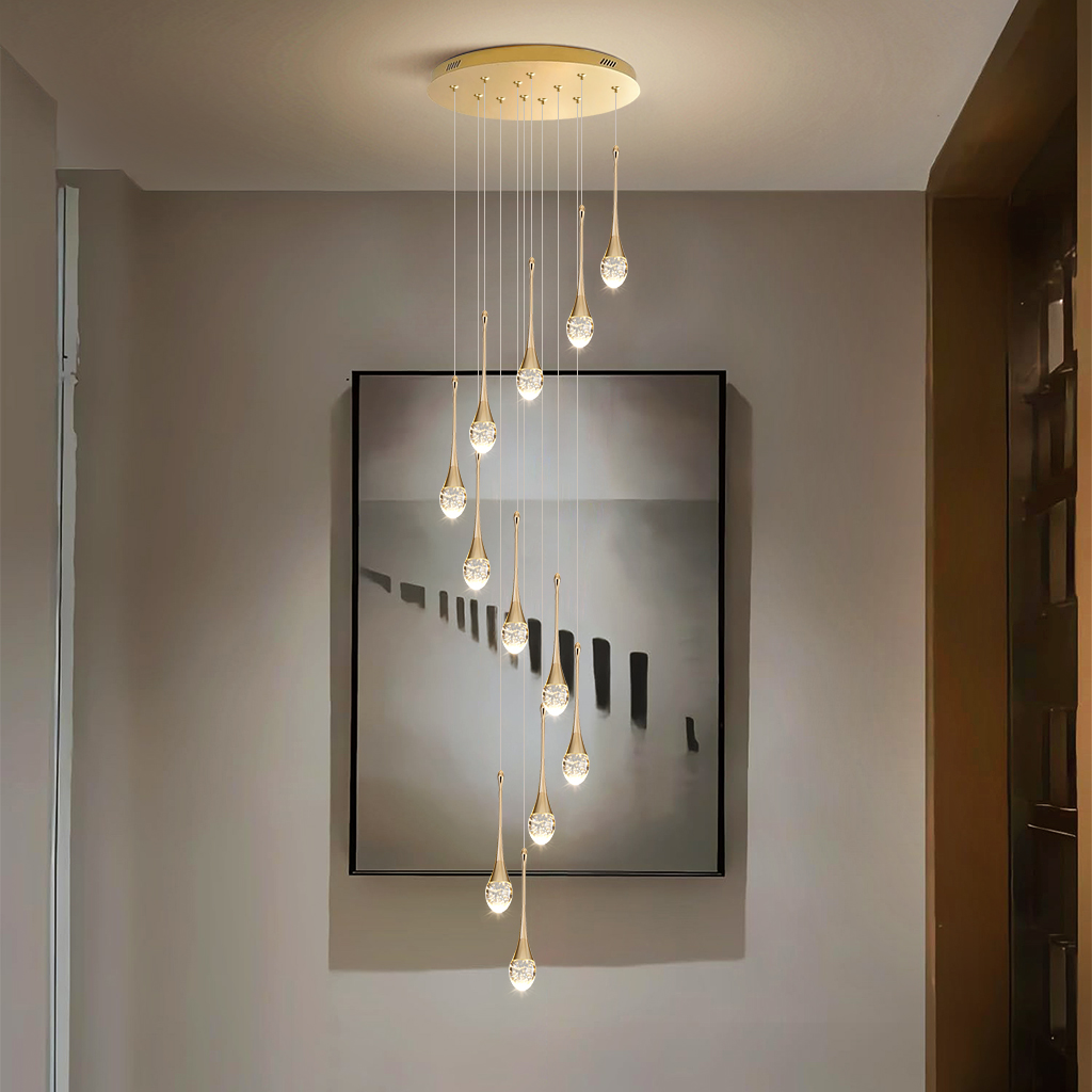Stair Chandelier Lighting Home Crystal Pendant Light Hotel Bar Ceiling Lamp 12 Heads 72W Remote