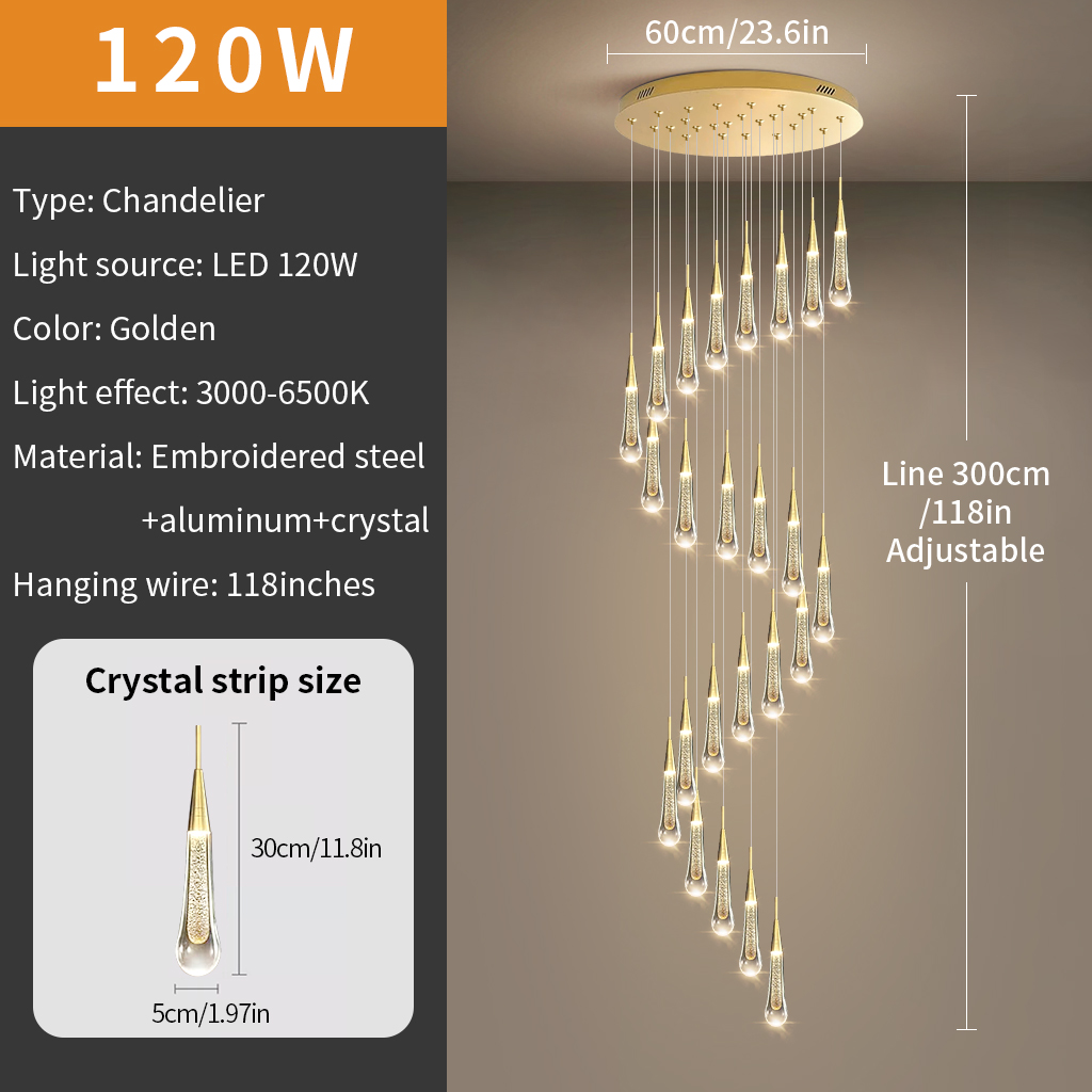 Stair Chandelier Lighting Hotel Crystal Pendant Light Home Ceiling Lamp 24 Heads 120W Remote