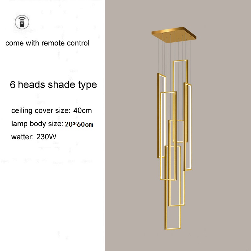 Stair Chandelier Lighting Kitchen LED Pendant Light Home Lamp Gold Ceiling Lights Remote 6 Heads