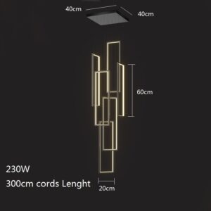 Dimension: 20x60cm Material: Metal Color: Gold Power Rating: 230W (come with remote control) Voltage: 110V-250V Light Source: LED Bulb Suitable Space: 10-25 square meter Apply to:  Kitchen,Bar,Room,Home,Hotel,Warehouse,Restaurant,Coffee Shop…
